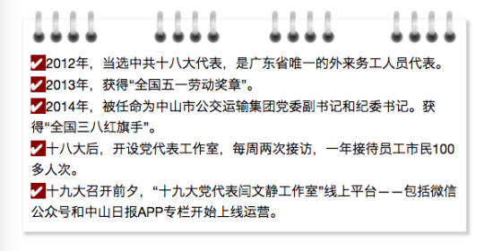 在中山工作的11年,只有两三个春节回家,其他时间都在单位陪伴员工度过。成为市公交运输集团党委副书记后,我感觉身上的担子更重。但我不怕困难,我开设了党代表工作室,每周两次接访,倾听来自员工和市民的诉求,特别是外来务工人员的诉求。