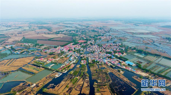航拍河北省雄安新区白洋淀内的村庄(4月9日摄)。新华社记者 牟宇 摄