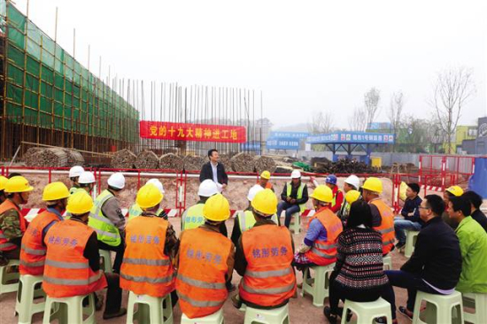 重庆市江津滨江新城宣讲员给建筑工人宣讲党的十九大精神