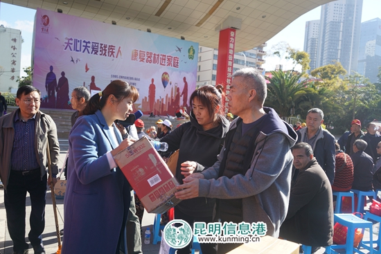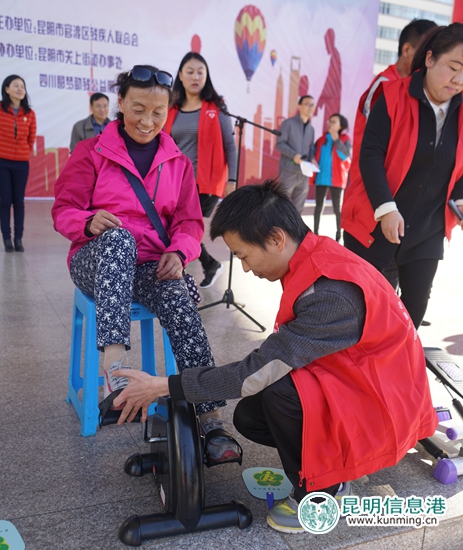 昆明信息港讯 通讯员熊楠 张云洪 11月15日上午,官渡区2017年残疾人“康复体育进家庭”项目在官渡广场启动,向来自关上街道辖区范围内的120个残疾人家庭发放了康复体育器材,为他们送上了一份温暖的情意。