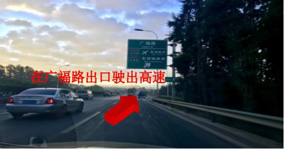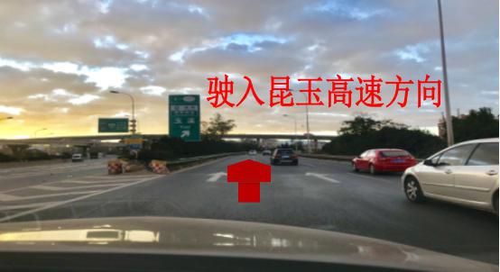 2、昆玉高速前行4.5公里后,在第一出口(广福路出口)驶出