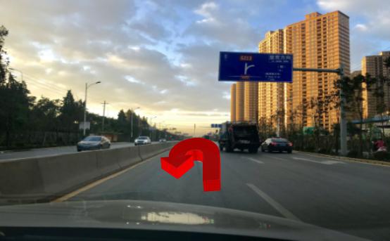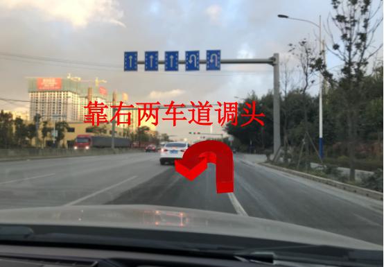 5、在交通信号灯处调头,往呈贡方向行驶