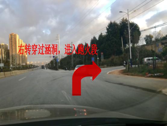 4、下桥后右转,靠右侧两车道行驶