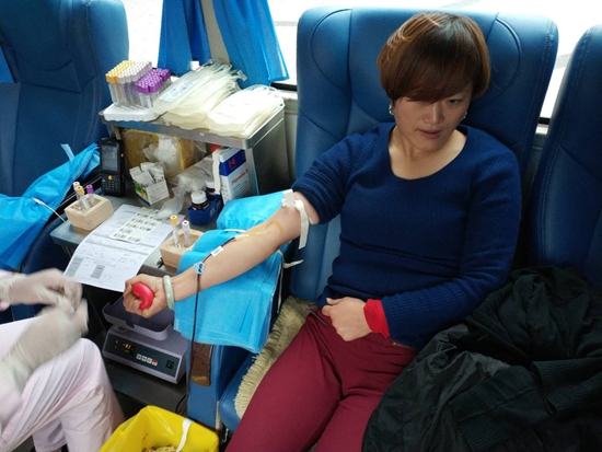 上午9点30分,献血活动正式开始,虽然寒潮来袭,寒风刺骨,但大家献血献爱心热情高涨。此次无偿献血活动自愿主动报名人数共计150多人。活动启动仪式后,献血车前都排起了长长的队伍,填表、登记、量血压、验血、献血井然有序的进行着。