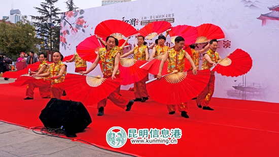 昆明信息港讯 通讯员李伟 杨富洪 12月20日,官渡区和平路社区一场名为“颂歌献给亲爱的党”的活动在太和街道雷锋广场上开展。社区的各界群众深深陶醉在自娱自乐的社区文化节舞台上。