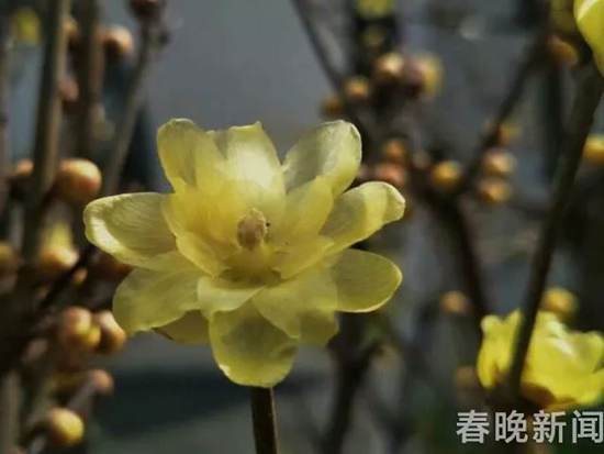 华珊说:“近日公园内的蜡梅陆续开放,除了盆景园中的20多盆蜡梅,园内内地栽的200多株蜡梅也已含苞待放,花色娇艳,正值观赏期。在山地梅园和龙泉寺里分布着4株“山蜡梅”,开得很热闹,如果不仔细看还发现不了。仔细观察不仅可以看到美丽的花朵,还可以看到它精致的果,很有欣赏的价值。”