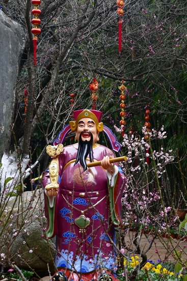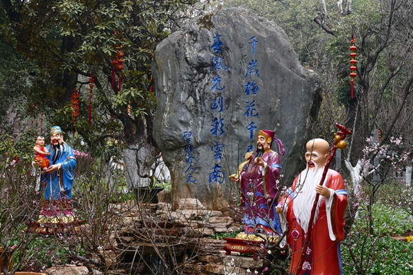 骆驼湾·“龙泉探梅”第二十二届昆明梅花节以“吉祥如意中国年”为体现主题,以6组中国神话传说人物雕塑园林小景,分区域错落布设于梅园中,配以鲜花绿植,组成本届梅花展的主要游览路线,让游人在游览梅园品赏梅花的同时,感受中国传统文化的源远流长与博大精深。