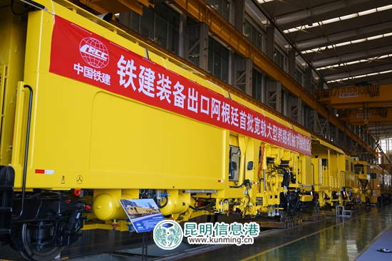昆明信息港讯 通讯员杨富洪 12月28日,三台轨距为1676mm的宽轨铁路大型养路机械设备在中国铁建高新装备股份有限公司下线,交付中国机械设备工程股份有限公司(CMEC),即将发往阿根廷贝尔格拉诺货运铁路改造项目投入使用。这是中国制造的铁路大型养路机械首次出口到阿根廷,铁建装备将以优质的产品和服务参与到阿根廷铁路建设和发展中。