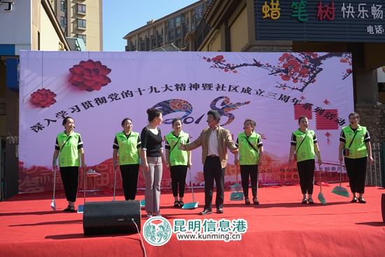 昆明信息港讯 通讯员夏雯 苏文忠 近日,官渡区小板桥街道林岸馨宸社区组织开展了深入贯彻学习党的十九大精神暨社区成立三周年活动,用喜闻乐见的形式为社区群众献上了一场丰盛的视觉盛宴。
