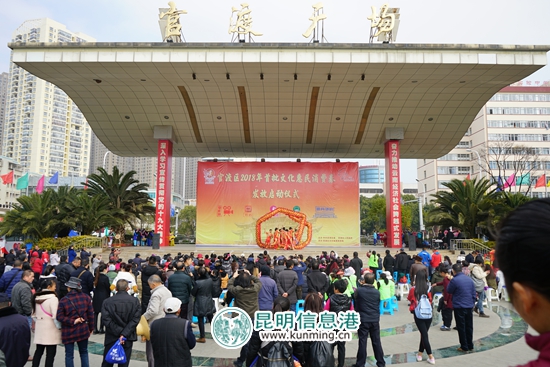 下午2点启动仪式正式开始,市民们早早的就来到广场上等待观看精彩的文艺演出,由辖区内组织的舞龙舞狮代表队拉开了活动的序幕。在广场的两侧官渡区文体局的工作人员已经做好了发放消费券的准备,厚厚的消费券摆放在桌子上,可有些市民早已按耐不住,手持身份证排起了长长的队伍。