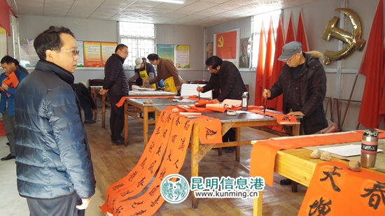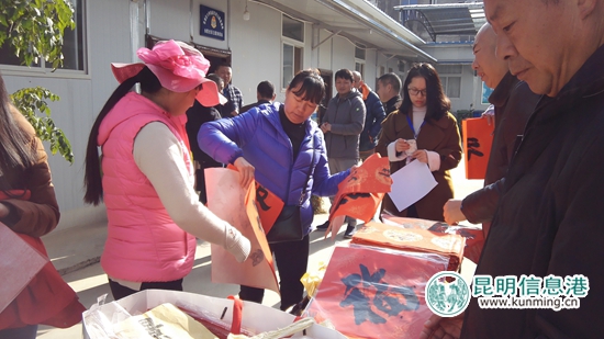 昆明信息港讯 通讯员熊楠 张云洪 2018年春节的脚步越来越近,年味也越来越浓。1月18日,官渡区六甲街道永胜社区给居民免费送春联,提前送来新春的祝福。