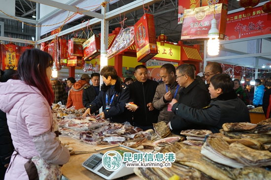 在老国贸中心场馆内,第十二届新春购物博览会正在这里热闹开展,琳琅满目的各类节日商品吸引了市民前来购买。为了全面筑牢食品安全防线,官渡区市场监督管理局与博览会举办方签订了食品安全责任书承诺书,对参展商工商营业执照、食品经营许可证、从业人贞健康等证照进行登记查验,并现场派驻了监管工作组,设置质量监督投诉点,每天都有工作人员对参展摊位进行实时动态监管。