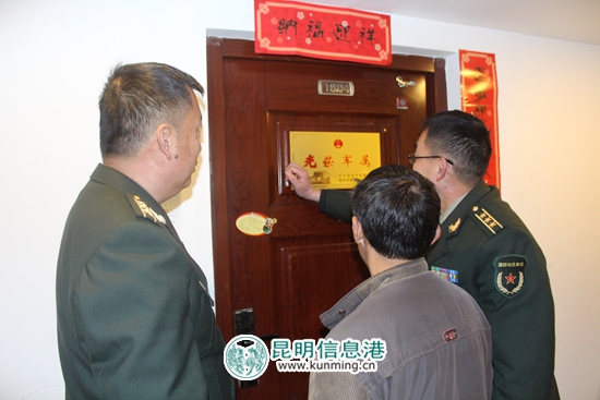 昆明信息港讯 通讯员林增 郭武辉 春节即将到来之际,官渡区委常委区武装部部长李斌同志带队上门为2位军人家庭挂牌授誉,并送上慰问品和节日祝福。