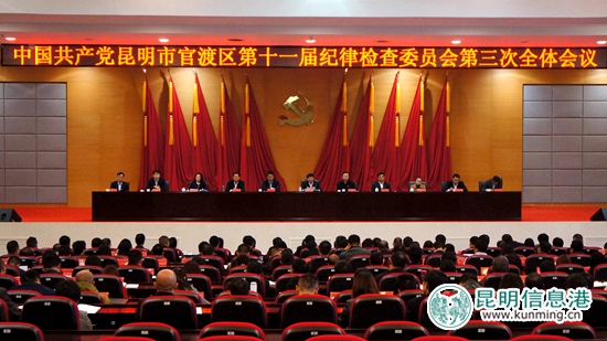 昆明信息港讯 通讯员李伟 杨富洪 2月26日,中国共产党昆明市官渡区第十一届纪律检查委员会召开第三次全体会议,全会全面总结了区纪委2017年工作,部署2018年任务,审议通过了区纪委常委会所作的《不忘初心 牢记使命 忠诚履职 坚定不移推进党风廉政建设和反腐败斗争》的工作报告。