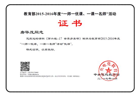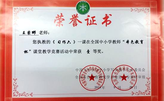 2015年11月29日宁丽老师获全国素养大赛一等奖
