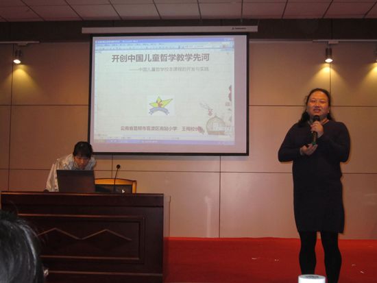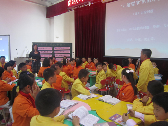 我校省级学科带头人高梅老师在向全区老师展示儿童哲学课