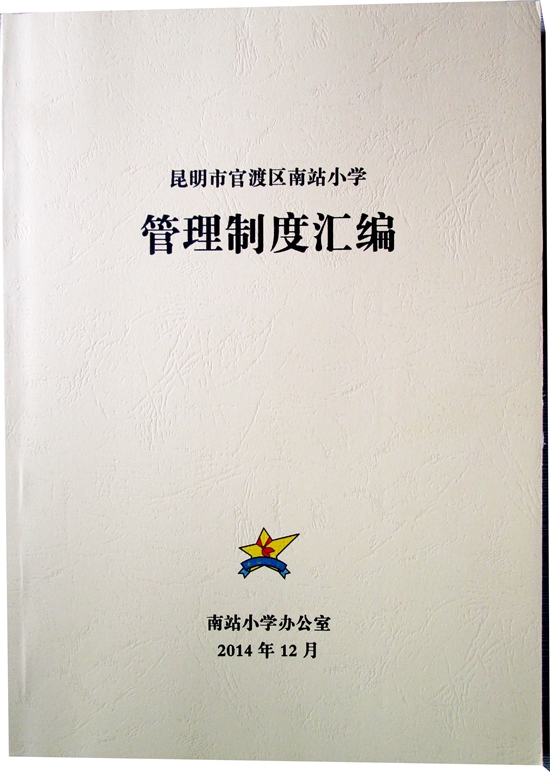 在贯彻落实国家教育法、义务教育法基础上,为建一队伍、一人才、创一流学校,我校根据实际特制定了《昆明市渡区南站小学管理制度汇编》,管理制度也将会为学校的治理法治化和规范化起到建设性的作用。
