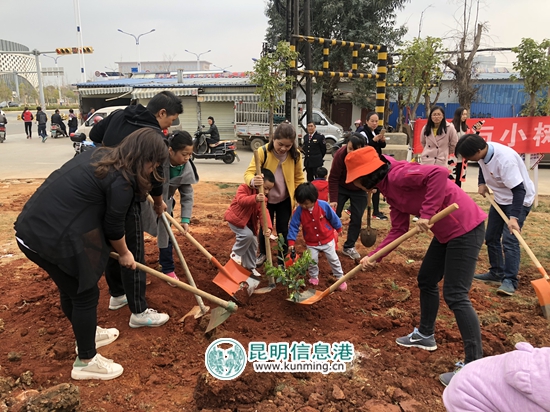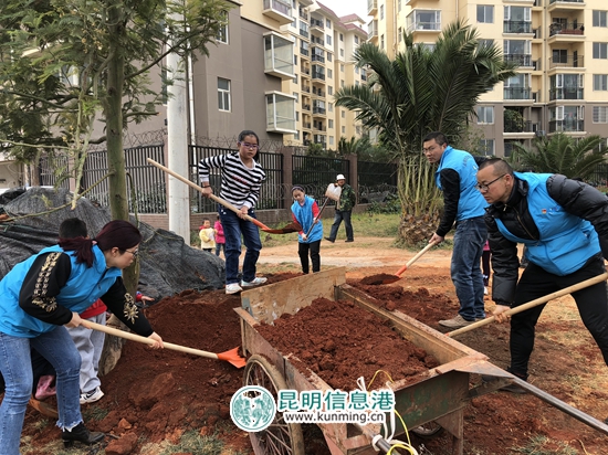 昆明信息港讯 通讯员熊艳琳 林增 阳春三月,大地复苏。在第40个植树节来临之际, 3月10日上午,昆明市官渡区矣六街道云翔社区联合公共单位、大党委成员单位、社区居民代表及党员志愿者在滇池星晨小区绿化带开展植树节活动,以实际行动,为家园播绿为城市添蓝为文明助力。