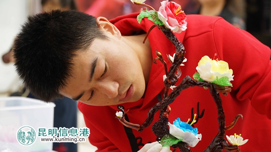 鸿鑫企业参赛选手平江的一个“醉中国”的插花作品在众多的参赛作品中显得格外引人瞩目。作品可赏、可观、更可食,娇艳的牡丹,遒劲的枝干都是采用一种叫艾素糖的材料制成,整个作品独具匠心、令人赏心悦目。最终,小伙子平江获得了比赛一等奖。
