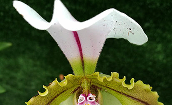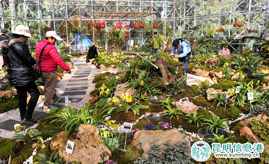 金殿中心温室区中展出了上百种兜兰,美不胜收。
