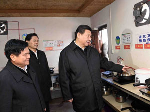 - 1月19日至21日,习近平在云南省委书记李纪恒、代省长陈豪陪同下,来到昭通、大理、昆明等地,看望鲁甸地震灾区干部群众,深入企业、工地、乡村考察,就灾后恢复重建和经济社会发展情况进行调研。中共中央总书记、国家主席、中央军委主席习近平近日在云南调研时强调,要全面贯彻党的十八大和十八届三中、四中全会精神,用全面建成小康社会、全面深化改革、全面依法治国、全面从严治党引领各项工作,加快贫困地区、民族地区经济社会发展,为到2020年如期实现全面建成小康社会奋斗目标加紧奋斗。