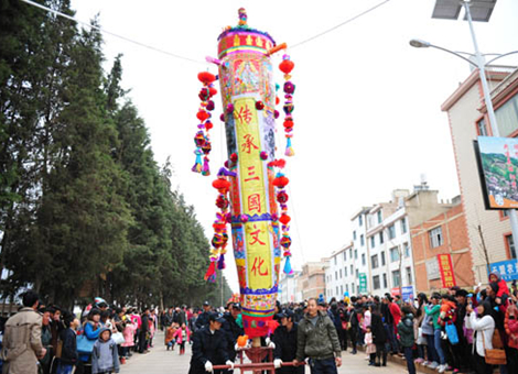 阳宗大香——堪称天下第一高香,是得美女山神女启示而创,始于明朝,阳宗大香高一丈九九,上口径三尺六寸,下口径一尺八寸,中间香把每年新砍柏木制作,四周竹篾编织,外层糊裱以三国内容为主的彩画,如桃园三结义、三英战吕布、千里走单骑及如来、观音等内容,以示神灵护佑、吉祥安康。