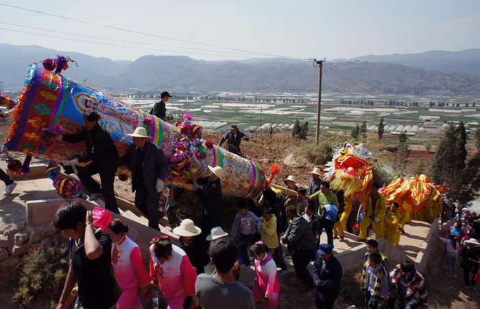 昆明阳宗海风景名胜区阳宗镇位于梁王山北麓,阳宗海南岸,距昆明市区34公里,全镇总面积143.46平方公里,地势西南高,东北低,平均海拔1780米。阳宗镇阳宗海畔有一个大集镇名叫新街,新街东侧山麓有一座始建于明朝弘治丁巳1497年的龙泉古寺。自龙泉寺建成后,阳宗每年都要在正月十四至十六举行隆重的“大香会”。