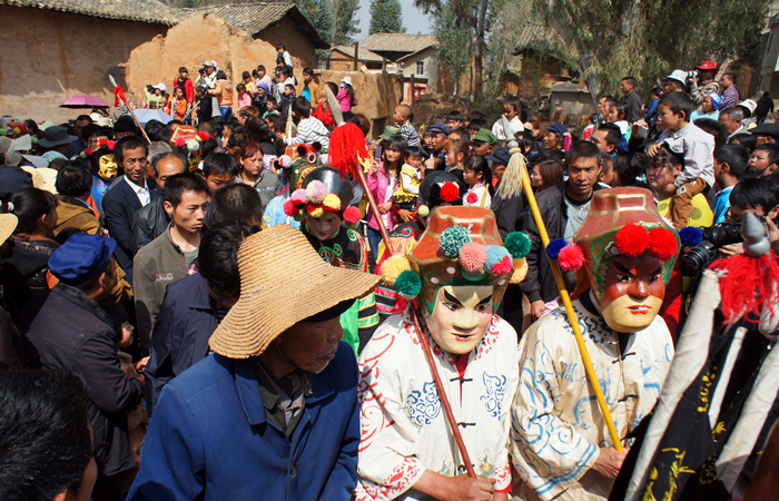 每年农历正月十四日举行祭祀活动。整个祭祀队伍先从新县村聚集,仅参与祭祀人员近千人,观光者数万人。两炷大香,每炷8人用轴承架子车用绳索牵引,大香前面16名童男童女执五色旗,在前面是四名童男鸣锣开道,再前面斋奶用抬火盆、焚香柏、抛洒净水。