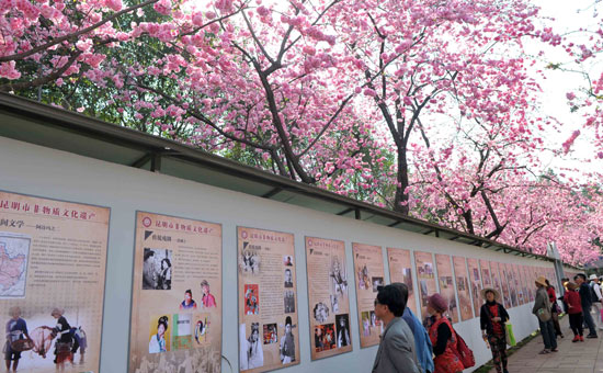 云南樱花和垂丝海棠一直是昆明市民最喜爱的春日一大盛景,“圆通樱潮”亦是昆明市人民政府首批公布的市级非物质文化遗产保护名录项目,每年吸引无数游客和市民前来观光。今年,昆明动物园的樱花节除延续往常的系列活以外,还联合昆明市非物质文化遗产保护中心推出“花潮似锦·璀璨非遗”为主题的活动,为圆通樱潮的常规看点又添亮色。
