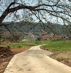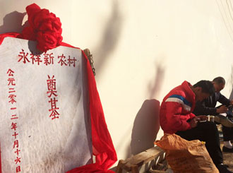 新房奠基之日村民在万古莫村小组的入口处放置着一块小石碑