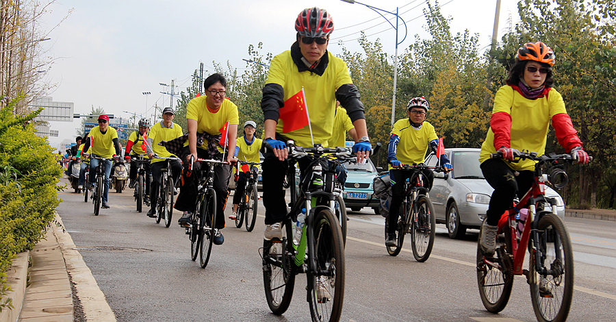 矣六街道新亚洲体育城社区组织居民开展”低碳骑行“活动