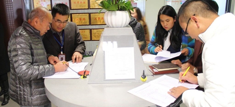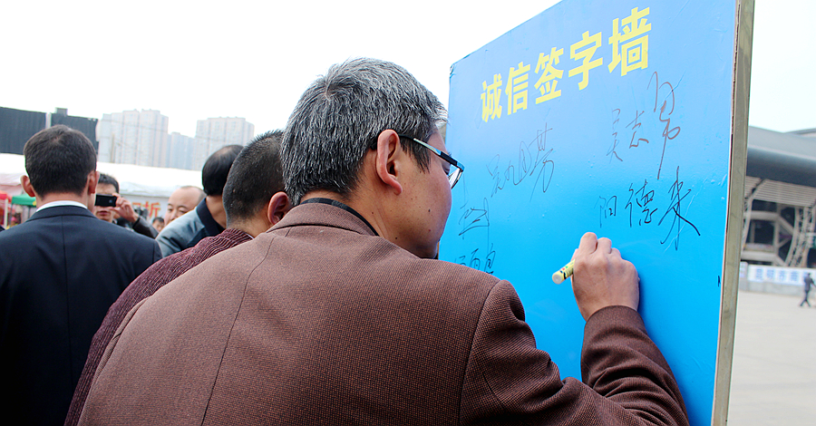 螺蛳湾商贸城社区商户在”诚信墙“上签名