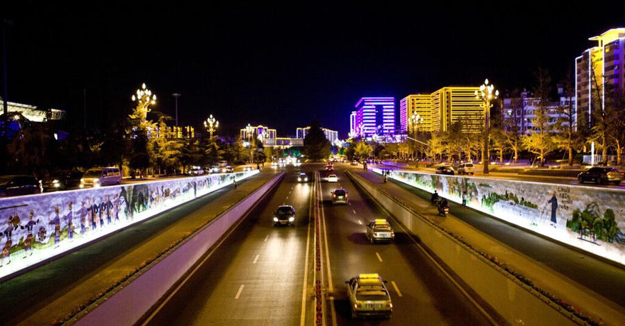 官渡夜景:国际会展中心(老国贸中心)旁的国贸路