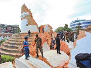 - 强震使尼泊尔文化古迹损毁严重。位于加德满都市中心的老皇宫院墙坍塌,著名世界文化遗产杜巴广场上三分之二的建筑物倒塌。加德满都地标性建筑之一、拥有百余年历史的达拉哈拉塔在地震中完全倒塌。