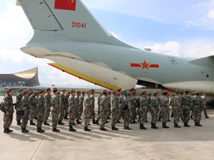 - 27日上午10时17分,一架伊尔76飞机从昆明机场赴尼泊尔地震灾区执行国际人道主义救援任务。飞机上载着第十四集团军某工兵团地震救援队第一梯队55名官兵和救援物资。