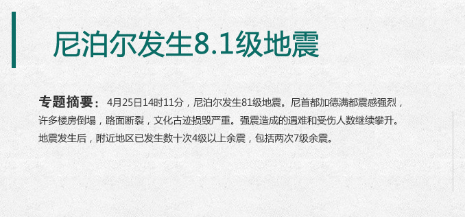 - 25日14时11分,尼泊尔发生强烈地震,震级8.1级。中国驻尼泊尔大使馆25日确认,两名中国公民在当天发生的地震中遇难。