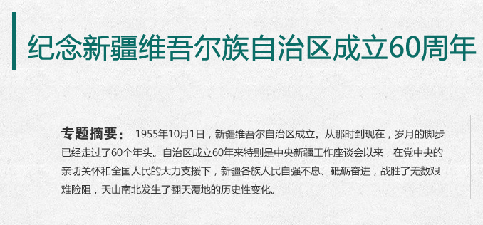 - 1955年10月1日,新疆维吾尔自治区成立。从那时到现在,岁月的脚步已经走过了60个年头。