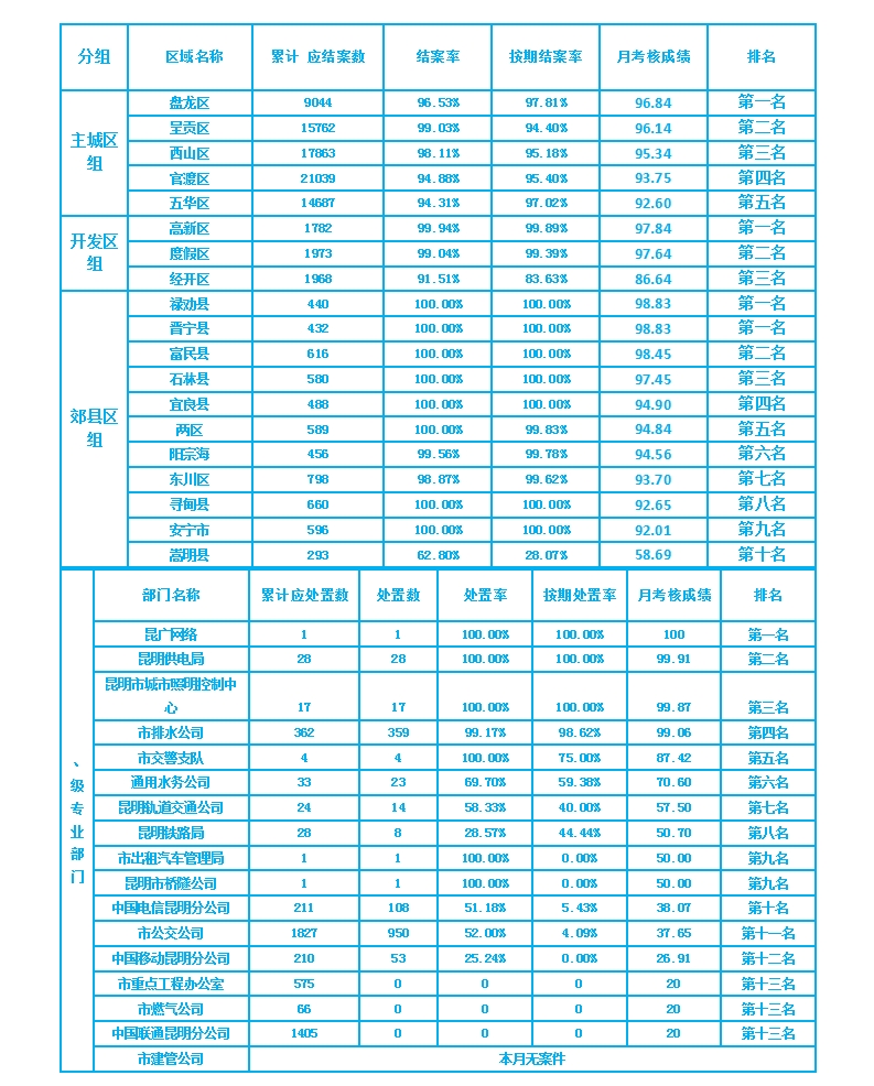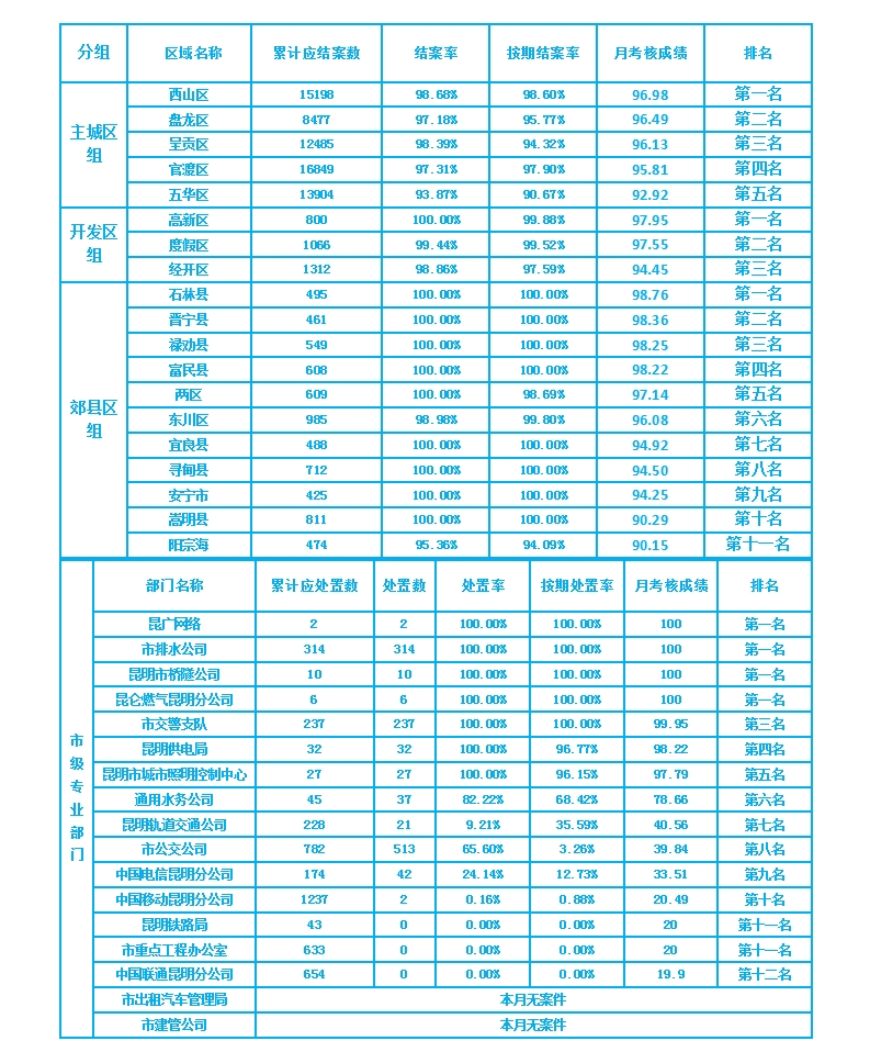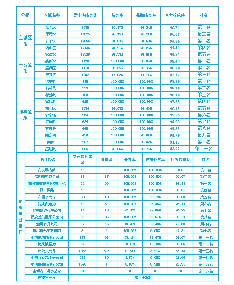 2015年12月,省委宣布由昆明市委书记担任滇中新区党工委书记、管委会主任。为认真贯彻落实《考核办法》,经报上级研究决定,我办将于2016年7月1日起将安宁市和嵩明县再次列入数字城管监督考核范围,划入郊县区组一并考核。