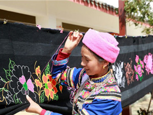 - 走进弥城镇谷芹村委会周伏营村的合作社理事长成平家的小院,家里人正在忙着绣荷包。