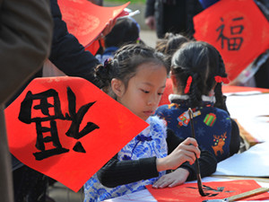 - 写春联是春节来临时必不可少的一项习俗活动,以前的春联都是手写,韵味十足,含义深远,现在的春联大多都是印刷品,虽然精美,却少了翰墨留香的浓浓年味。18日下午,高新一小海源校区的同学们进行了一场主题为“国学”的写春联写福字活动。手写春联,让春节更加有年味。
