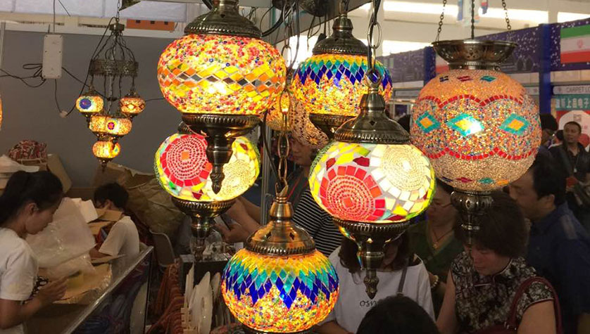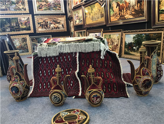 国际友城馆特产又多又新奇 伊朗展区的花瓶披毛毯