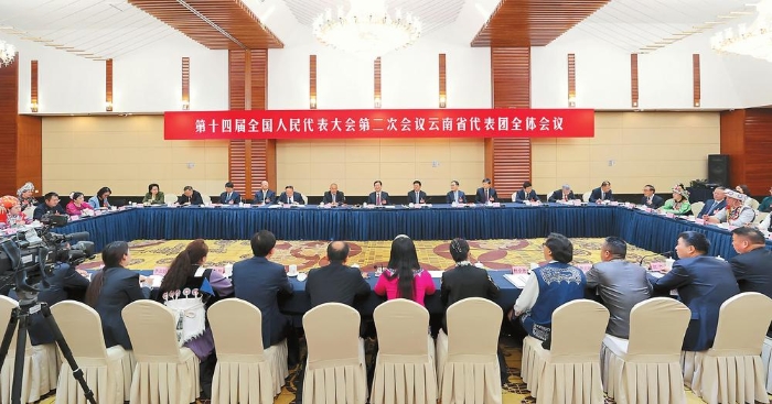 3月10日上午,出席十四届全国人大二次会议的云南省代表团举行全体会议,审议全国人大常委会工作报告、最高人民法院工作报告、最高人民检察院工作报告。