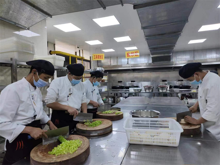 食材采用正规渠道采购,必要时定点采购。所采购的食品及原料必须符合国家有关食品卫生标准,并应向供货商索取食品及原料的卫生质量保证书。肉类原料必须索取兽医卫生检验合格证,并符合国家标准一级鲜度;水产类原料必须是新鲜的或冷冻的、组织有弹性、骨肉紧密接连的水产品,蔬菜原料必须新鲜、正常、无病虫害、无农药污染、无腐烂。采购食材及食品,必须向供方索取资质资料检验许可证等。并且有专人负责食品验收,并做好食品验收记录。粗加工前须检查食材原料的质量及卫生是否达标。禁止加工四季豆、臭豆腐、野生动植物,冷荤凉菜等,禁止使用添加剂。烧煮烹制前检查食品质量,不烧煮烹制腐败变质食品。烧煮烹制、出菜流程合理,无交叉污染。生熟菜分层或分台放置。生熟食品台架有明显标记,不得混用,用后清洗消毒,保持清洁整齐。盛装调料的容器要保持清洁卫生,定期消毒,无油垢。