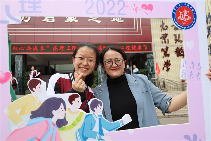 昆明理工大学附属高级中学高度关注学生身心健康。除了平时的心理健康课程外,在每年5月下旬都会举行“5.20心理健康节”活动,为广大学生提供了一个寻找自我、释放压力的平台,积极营造有利于学生身心健康的氛围,普及心理健康知识,引导学生关注内心世界,教会学生疏导心理问题的正确方法,用乐观拥抱生活,用微笑倾听世界!
