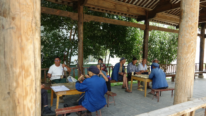 步入社区,道路整洁、环境优美。与每家每户干净整洁的小院相呼应的是随处可见的法律宣传标语。路过凉亭,村民们在悠扬的二胡声中拉着家常。