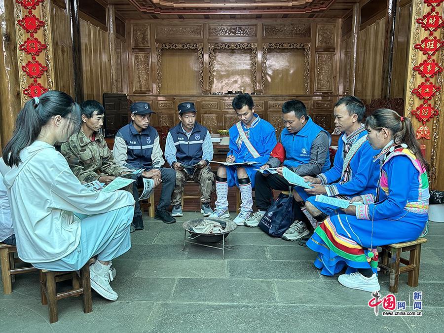 在另一户傈僳族家庭,同样在进行火塘会,他们的主题是“普法”。记者赶到时,当地的“法律明白人”正在发放着普法传单。随后,大家围坐在火塘边,“法律明白人”用傈僳族语言开始讲解“三农”政策、预防电信诈骗等相关内容。