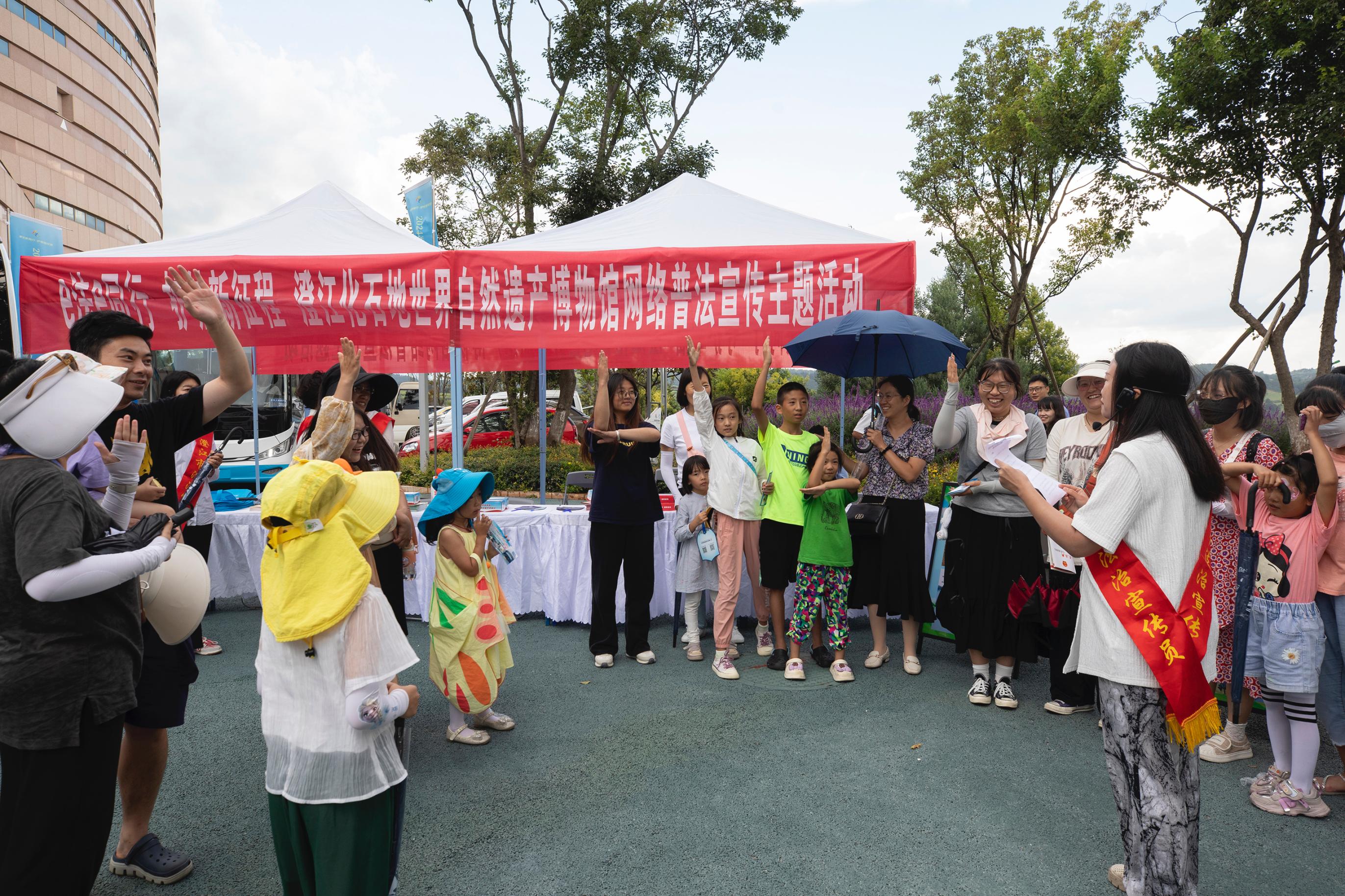 在云南省网络普法特色基地——澄江化石地世界自然遗产博物馆,一排排法律宣传展板整齐摆放在路两侧,科普大篷车“开”进了博物馆。线上扫码答题、线下现场互动、领取普法宣传品等活动吸引了大批游客参与。