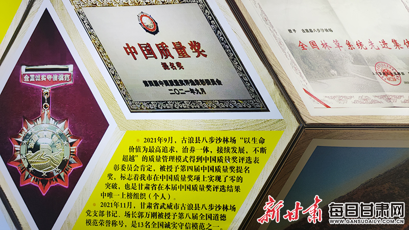 2021年9月,八步沙林场被授予第四届中国质量奖提名奖