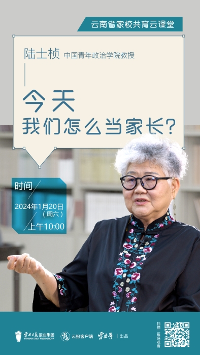 家庭是人生的第一所学校,谁最该教会孩子如何成为大人?家长,家庭,无疑是第一责任人。但在家庭教育过程中,家长们经常遇到各种各样的问题,不知道应该如何应对。今天,究竟该如何教孩子,如何做家长?由中共云南省委教育工委、云南省教育厅主办的“云南省家校共育云课堂”第一讲开讲了!由中国青年政治学院教授陆士桢与您一起谈谈“今天怎么当家长?”