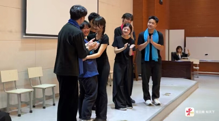 活动现场,邀请六位观众上台分享自己生活中最难忘的故事和经历,由云南艺术学院的学生用即兴演绎的方式,把观众的故事呈现在舞台上,精湛的表演和触达观众心灵的沉浸式体验,让现场响起了一阵阵掌声和喝彩。一位警官学院的同学表示,通过今天这场心理剧场活动,让他找到了来警校的初心,并坚定了自己的方向。
